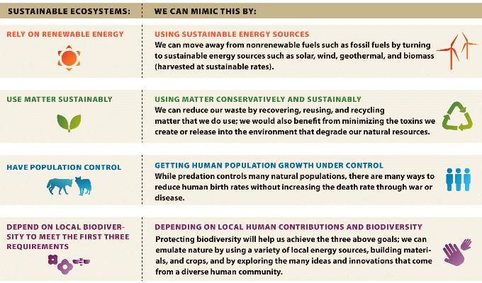 This set of practices comprise "biomimicry": mimicking natural processes to develop sustainable practices for human societies.