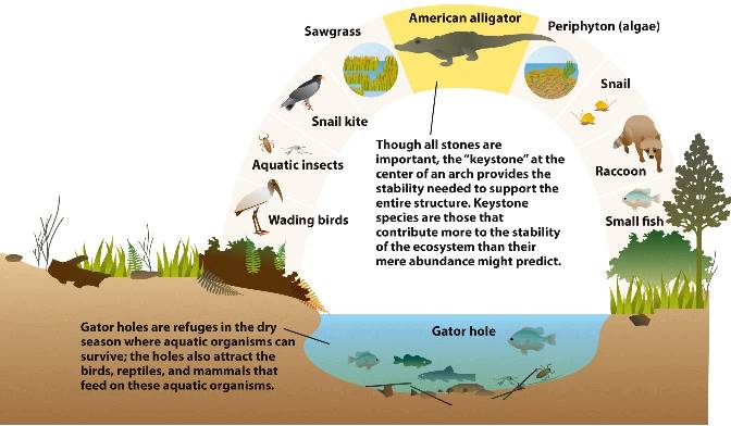 The American alligator is a keystone species in the Florida Everglades.