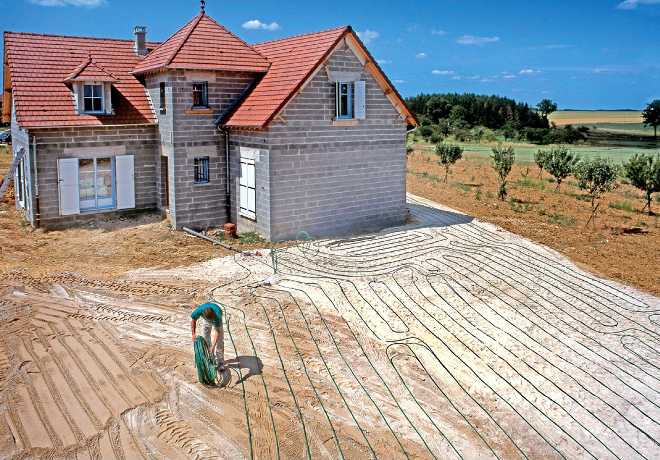 In winter, heat is transferred from the ground to the house.