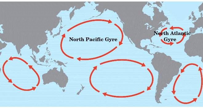 Floating debris often collect within gyres - rotating ocean currents.