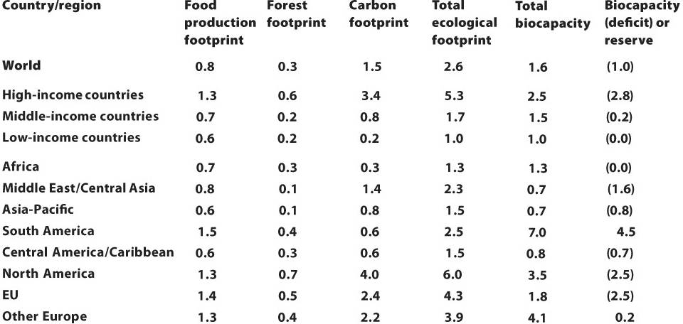 2008 data from the Global Footprint Network show that world ecological footprint of 2.6 hectares