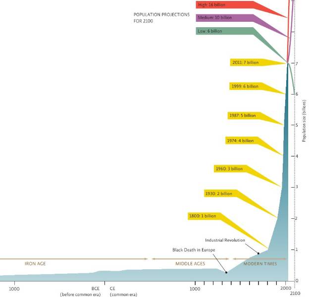 The human population started to experience a rapid growth around the time of the