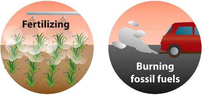Humans often accelerate the production of organic nitrogen by using fertilizers, some of which escape to aquatic ecosystems, upsetting their nitrogen balance.