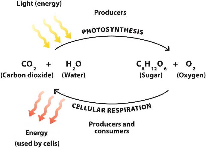 During photosynthesis, producers such as plants use energy from light to convert CO2 from the atmosphere into energy-rich sugar.