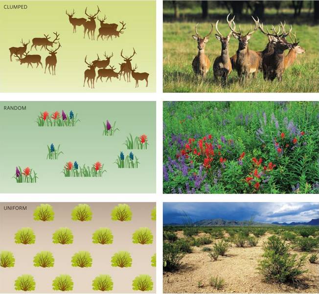 The distribution patterns of individuals in populations vary between species
