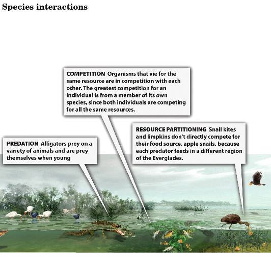 - Resource partitioning reduces competition between species when different species utilize different parts