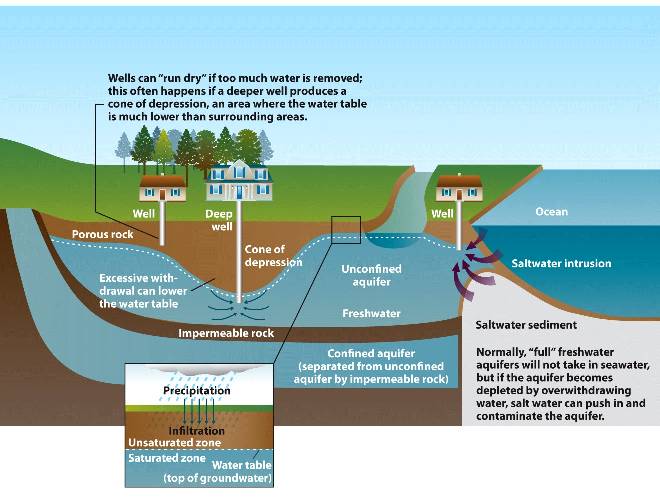 Decreased water flow allow water to infiltrate the ground and replenish groundwater.