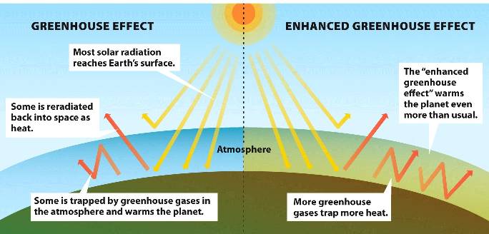 This enhanced greenhouse effect traps more heat and leads to global warming.