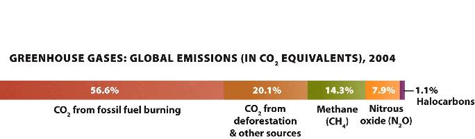 Methane is also a greenhouse gas and can trap heat 25 times as much as CO2, but since much less methane is being released to the atmosphere, its current CO2 equivalent contribution to global warming is only 14.3%.